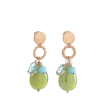 Orecchini pendenti in lega senza nichel con galvanica in oro.Gli orecchini sono pendenti con una goccia di murano in verde e cristalli a contrasto di colore
