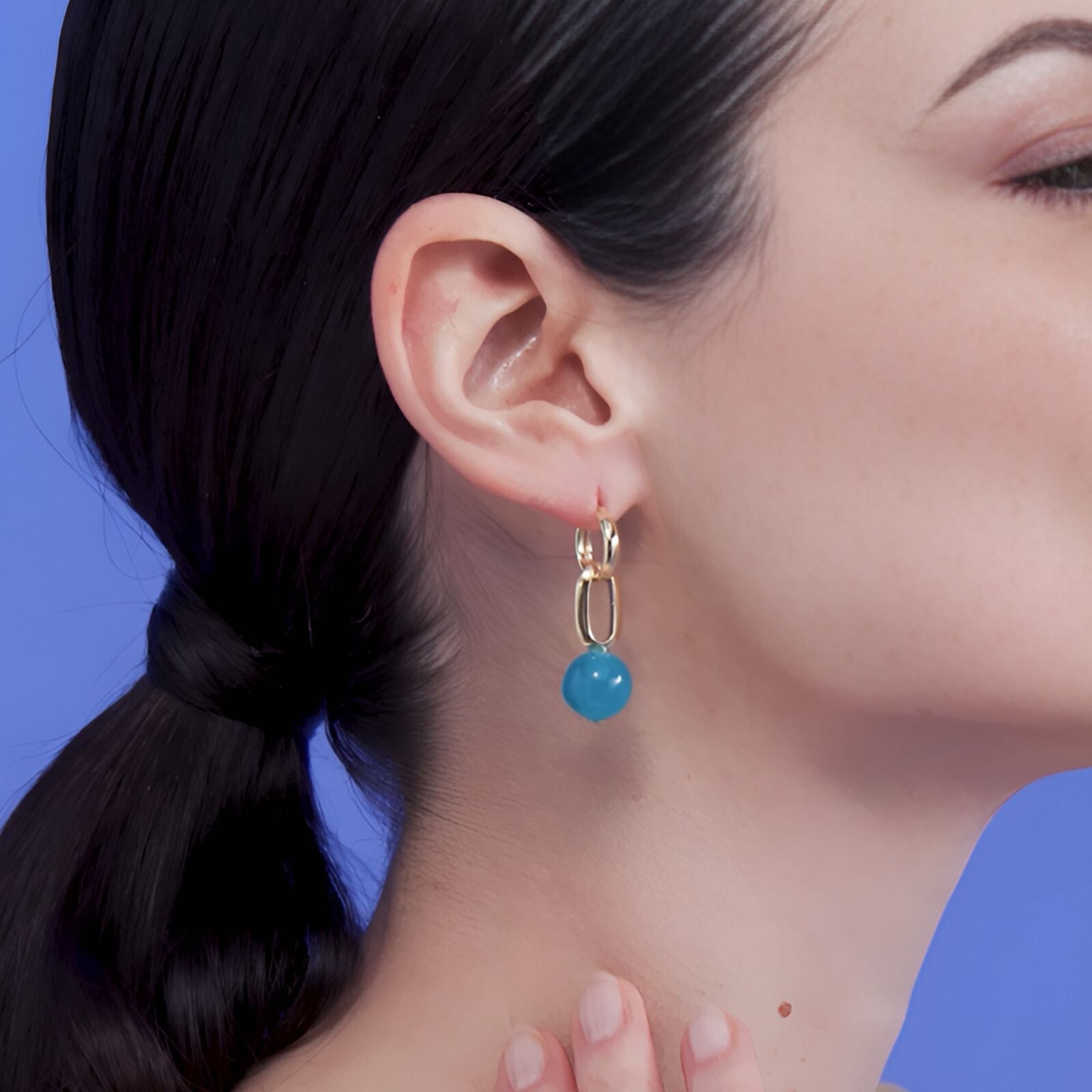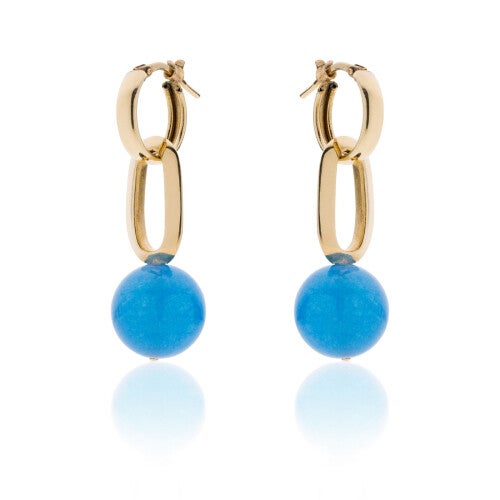 Attraverso gli accessori e i dettagli giusti possiamo raccontare qualcosa di noi. Con la delicata eleganza di questi orecchini con cerchietto dorato e maglia con perla blu removibile, racconterai sicuramente una storia raffinata. Indossali ogni volta che vuoi aggiungere un tocco di colore e femminilità al tuo look.